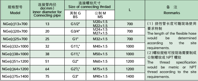 本産(chǎn)品由内外(wai)螺紋接頭(tou)、金屬軟管(guǎn)、護套組成(chéng);